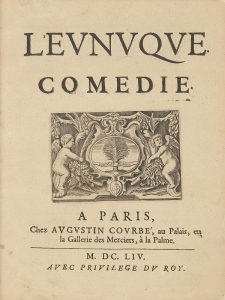 L’Eunuque, œuvre de jeunesse de La Fontaine imitée de Térence, fut imprimée peu après son mariage. C’est LE PREMIER LIVRE DU FABULISTE.