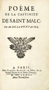 LA FONTAINE - 1621 - 1695 — POËME DE LA CAPTIVITÉ DE SAINT MALC. — Paris, Claude Barbin, 1673. — In-12, maroquin vert, janséniste, dentelle intérieure, tranches dorées (Trautz-Bauzonnet).