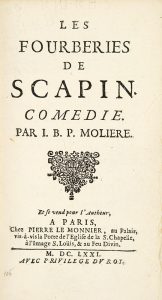 MOLIÈRE - 1622 - 1673 — LES FOURBERIES DE SCAPIN. — Comédie. — Et se vend pour l’Autheur, à Paris, Pierre Le Monnier, 1671. — In-12, maroquin rouge, janséniste, dentelle intérieure, tranches dorées (Marius Michel).
