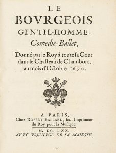 LE BOURGEOIS GENTIL-HOMME, Comédie-Ballet, Donné par le Roy à toute sa Cour dans le Chasteau de Chambort, au mois d’Octobre 1670. — Paris, Robert Ballard, 1670. — In-4, maroquin rouge, triple filet doré, dos lisse orné à la grotesque et...
