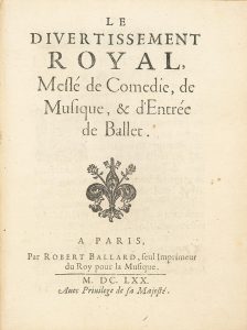 LE DIVERTISSEMENT ROYAL, Meslé de Comédie, de Musique, & d’Entrée de Ballet. — Paris, Robert Ballard, 1670. — In-4, maroquin rouge, janséniste, dentelle intérieure, tranches dorées (Chambolle-Duru).