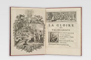 LA GLOIRE DU VAL-DE-GRACE. — Poëme. — Paris, Jean Ribou, 1669. — In-4, maroquin rouge, janséniste, doublure de maroquin bleu bordée d’un filet doré, tranches dorées, étui (A. & R. Maylander).