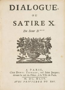 Dialogue, ou Satire X. Paris, Denys Thierry, 1694.