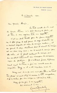 1 page in-8.Sur la mort du chef d’orchestre Walther Straram (1876-1933) : « C’est une perte terrible pour les jeunes compositeurs car il était presque le seul parmi les chefs d’orchestre ici à vraiment comprendre et aimer la musique moderne ; et en général la façon désintéressée dont il aimait la musique est une chose assez rare – car il aimait la musique pour elle-même, et il jouait seulement la musique qui lui semblait intéressante sans s’occuper des conséquences auprès du publique. Je n’oublierai jamais le fameux concert auquel M. Straram a joué une nouvelle œuvre du compositeur Berg – il a été magnifique ce soir-là »...