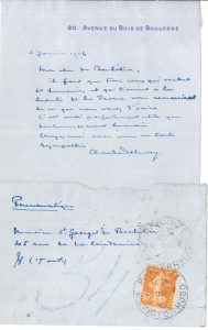 Claude DEBUSSY (1862-1918). L.A.S., 3 janvier « 1914 » [pour 1915], à Saint-Georges de Bouhélier