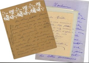 18 pages formats divers.Dans une jolie lettre à une amie d’enfance (vers 1902), elle évoque sa vie qui est un « ouragan » et sa carrière : « Qui aurait dit, ma petite Marie quand j’étais une petite modiste que je deviendrais une artiste, que j’aurais du succès ! [...] Ce que l’on prenait pour de la folie ou de mauvais instincts, n’était que de la vocation » Elle est devenue célèbre sans avoir fait le Conservatoire, et la Comédie Française la réclame... Remerciements pour des articles élogieux, notamment à Lucien Muhlfeld ; mise au point pour l’achat de tableaux au Salon des Humoristes ; demande de jouer L’Oiseau blessé à Lyon… On joint un billet a.s. et une carte de visite autographe.