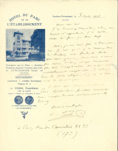 5 pages formats divers (plus une enveloppe). 20 août 1891, à un cher confrère : il voyage. « Quant à Misère, j’en suis plus éloigné que jamais, décidé à ne plus faire de nouveaux ouvrages. Je liquiderai la situation en terminant les œuvres commencées, et ce sera tout. J’ai acquis le droit de me reposer. […] je ne suis pas encore allé dans les autres planètes, mais il ne faut désespérer de rien »… 25 mars 1912, [à Lucien Muratore] qu’il a eu plaisir à revoir en Hercule : « Il est si rare, dans la carrière d’un auteur, de trouver un interprète qui vous satisfasse sous tous les rapports ! »… Bourbon-l’Archambault, 3 août 1918 : il a beaucoup travaillé et se prépare à partir ; il ne croit pas à l’occultisme : « Je crois qu’il y a encore, dans la nature, une foule de choses que nous ignorons, dont nous n’avons pas même l’idée, et qui donneront plus tard l’explication de ce qui est actuellement inexplicable »… On joint une carte a.s. de son secrétaire Jean Bonnerot.