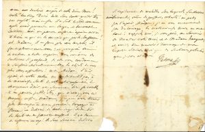 2 pages et demie in-8, adresse (taches). Il lui répond tardivement, car il est allé de Rouen à Nantes, puis à Metz, et enfin à Nancy et regrette de n’avoir pu lui rendre visite lorsqu’il jouait à Rouen. Il évoque la mort du poète tragique Jean-François Ducis (31 mars) : « Notre bon vieux Ducis doit sans doute exciter tous nos regrets, mais enfin il a subi le sort commun après avoir parcouru une longue et honorable carrière ». Puis il s’apitoie plus longuement sur les souffrances de ses enfants : « Il y a tant de ressources en eux ! ils sont souvent délivrés si rapidement de maladies sous lesquelles sembleraient succomber même des personnes robustes ! »...