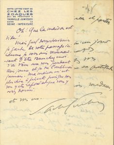 [vers 1912-1928], à divers ; 6 pages in-8 ou in-4. [Vers 1912 ?], à Octave Mirbeau, à l’en-tête de sa maison Chez les Zoaques à Yainville-Jumièges : « Ma maison m’est plus chère à présent que vous vous y êtes reposé et que vous y avez dormi » ; on a abattu un chêne : « C’est la seconde grande silhouette qui part aujourd’hui. La vôtre me manque davantage »… – À Mme René Doumic, la remerciant de ses articles : « Ne pensez-vous pas que certaines pages de votre adorable livre sur l’Impératrice Joséphine pourraient être dialoguées et portées à la scène ? Moi, je le pense »… – 25 avril 1928, [à Lucien Muratore], L.S. donnant ses coordonnées pour une rencontre, avec un mot autographe « C’est urgent ! » On joint 3 L.A.S. de Lucien Guitry, remerciant un critique de ses encouragements(1880), donnant son jugement sur les opéras qu’il a entendus récemment (1887) et évoquant son rôle de Chantecler (1910, à Émile Bergerat).