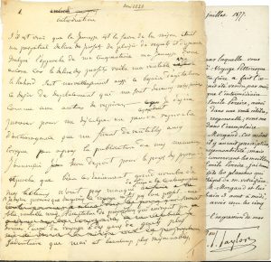 Gustave Aimard (1868, à Emmanuel Gonzalez), Charles Asselineau, Michel Delaporte (1851, à Jules Janin), Marc-Antoine Désaugiers (2, 1826-1827), Paulin Niboyet (ms a.s., Lettres d’Allemagne, Leipzig 1853), Édouard Ourliac (à Curmer), Ernest Renan (emploi du temps autographe, décembre 1889), Noémi Renan, Anna Rodenbach (sur la mort de son mari), Ida Saint-Elme (ms de l’introduction à La Contemporaine en Égypte, mai 1828 ; 4 lettres à Ladvocat et 9 reçus, 1831-1832), Laurent Tailhade, Isidore baron Taylor (à Isaac Pereire, 1877).