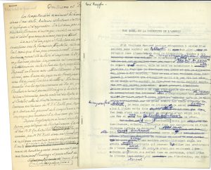Félix Cadet de Gassicourt (Occultisme et Prophéties, ms a.s., [1939] ; Gilbert Charles (La Source des songes : vers autogr. pour le recueil de poèmes de 1932-1943 (6 p.), plus 3 dessins originaux par l’illustrateur Jacques Teillac) ; Yves Gandon (Le Livre de chevet. La Chartreuse de Parme, ms a.s. d’une conférence, 25 p.) ; Jules Hesry (extrait de Pharmacie, donnant ses vers, avec envoi a.s., 1929) ; René Huyghe (Van Gogh, ou la Poursuite de l’absolu, conférence dactylogr. avec nombreuses corrections autogr., [1953], 31 p.).