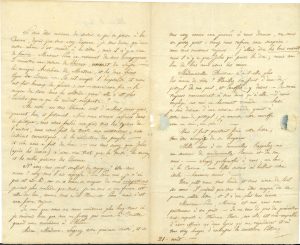 21 août, à S.E. la Marquise Béatrice Trivulzio ; 3 pages in-8. Il lui envoie le livre sur Giannini, et se plaint de son départ, qui les laisse, lui et son ami Jules, désespérés. Elle a été remplacée à la Cascina par une colonie de jeunes libéraux, le marquis Arrivabene de Mantoue et les deux frères Ugoni de Brescia ; ils ont avec eux des conversations politiques : « nous avons foulés aux pieds tous les tyrans de l’univers, nous avons fait des toasts aux constitutions, aux doctrines romantiques, à la civilisation des peuples – et cela nous a fait du bien – car vous savez que Jules (après les dames) n’aime rien tant que la vérité, le courage, et les nobles passions des libéraux »...Il s’inquiète de la santé de sa correspondante et demande des nouvelles de son entourage...