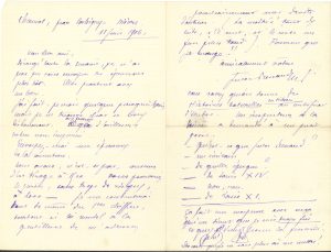 1906-1908, à l’éditeur Paul Ollendorff ou son collaborateur Pierre Valdagne ; 2 et 4 pages in-8. Chaumot 11 juin 1906. Il envoie les épreuves (pour la réédition de La Lanterne sourde et Coquecigrues, édités pour la première fois en 1893) : « J’ai fait, je crois quelque progrès depuis, mais je ne trouve pas ce livre déshonorant ». Il demande les épreuves de la couverture, discute du tirage (1500 ou 2000), et réclame ses droits d’auteur : « Pourvu que je mange !! » Il ajoute : « Savez-vous qu’on donne des Histoires naturelles en dictées au certificat d’études » ; un gosse a répondu qu’il était un écrivain de l’époque de Louis XIV, puis de Louis XI ! : «Ça fait une moyenne avec ceux qui disent que je suis trop fier et que je n’écris plus pour la postérité »... Paris 26 octobre 1908. Il s’insurge de la façon dont il est traité et regrette d’avoir donné son livre à Ollendorff : «  Je l’ai donné à l’ami et à l’homme de lettres, à condition qu’il en serait le maître ! Je ne comprends plus. Ou plutôt je comprends que Fayard se soit moqué de moi quand j’ai passé de Fayard à Valdagne », à qui il reproche sa légèreté et son incompétence : « Je me demande ce qui vous regarde ? Le livre a dû paraître en janvier, en juin, en septembre, en octobre. Ça ne vous regarde pas »… Il a lâché une critique théâtrale et le Mercure de France « qui m’offrait pour mon livre des conditions très honorables », pour se faire traiter de « poire par votre maître. Le résultat : je n’ai plus aucune confiance en mon livre ». Il préfère mettre un point final à cette histoire. [Nos frères farouches, Ragotte paraîtra chez Fayard.]