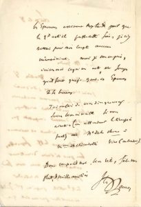 Liège ce 8 [juin 1849], à l’imprimeur Jean-Pierre Gerdès, commis de la Revue des Deux Mondes ; 2 pages in-8. Il n’a toujours pas reçu les épreuves attendues de son article sur Chênedollé. « Un tel retard m’effraye, car il va devenir impossible que les épreuves aillent et reviennent deux fois avant le 15. […] songez qu’il faut que je garde ces épreuves 24 heures »...