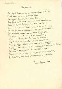 Jules SUPERVIELLE (1884-1960). Poème autographe signé, Disparition,