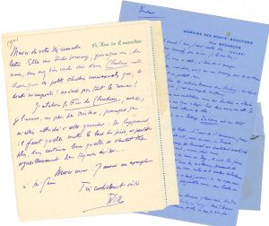 Paris ou Domaine des Monts-Bouccons (Doubs) 1901-[1906] et s.d. ; 7 pages et demie in-8 ou in-12 (2 au dos de cartes postales le représentant), qqs adresses, une enveloppe. [11 avril 1901], à Édouard Ducoté : « vous avez bien voulu voir dans Claudine autre chose que ces petits chichis unisexuels qui, le diable m’emporte ! ne sont pas tout le roman ! J’élabore La Fin de Claudine, avec […] un peu de tristesse, puisque je m’étais attaché à cette gamine »… – « À qui dois-je envoyer Claudine à Paris pour que L’Ermitage puisse parler (en bien ou en mal, cela ne me regarde point) de cette jeune gobette ? »… [15 août 1902], à Mme Tarquini d’Or : « Que Claudine ressemble à Colette, c’est forcé, car je me suis beaucoup servi de ma chérie pour écrire le roman ; que ce soit un portrait, non »… Il signe : « Willy (et Colette). [Décembre 1906], à Raynaud : « Ah ! si vous pouviez me trouver un amateur pour mon portrait par Boldini. Je voudrais m’en défaire »… Etc. On joint une L.A.S. de son secrétaire Marcel Boulestin.