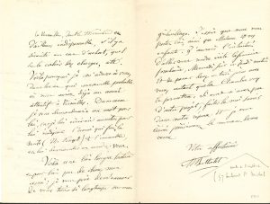 1868-1874, 3 à son ami Ernest Picard ; 9 pages in-8, à son chiffre. 10 septembre 1868 : « Nous irons vous voir, les Renan, ma femme et moi samedi matin » ; Renan repart lundi pour la Bretagne. 4 juin 1874 : il souhaite acheter une maisonnette à Sèvres et demande l’adresse d’un bon avoué à Versailles. 15 juin 1874 : il ne donnera pas suite à son projet et compte lui rendre visite dans sa propriété des Ambésys. 6 novembre 1877 : après la mort de Picard (13 mai 1877), il transmet à Albert Liouville une demande de renseignements du directeur du Collège Rollin, où « d’après un usage immémorial on célèbre le 10 novembre une messe pour les anciens élèves morts dans l’année »… On joint une L.A.S. de Sophie Berthelot à Mme Picard, et une L.A.S. de Daniel Berthelot en remerciement d’une souscription pour un monument en l’honneur de son père.