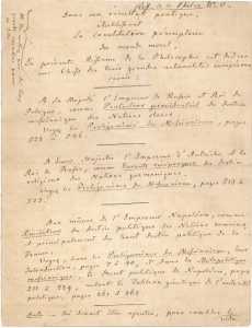 et notes autographes pour l’imprimeur, le second avec dédicace et préface autographes, Deuxième Partie. Réforme des Mathématiques, comme prototype de la réforme générale des sciences et de la philosophie, [1847], et Réforme de la Philosophie, au Bureau du Messianisme, [1847]-mai 1848 ; 290 pages in-fol., et 89 pages in-fol. dont 18 entièrement autographes. Manuscrits pour Messianisme, ou Réforme absolue du savoir humain, dont Wronski avait commencé la publication en 1847 (3 vol., chez Firmin-Didot frères), et dont la partie consacrée à la réforme de la philosophie semble être restée inédite. Citons-en les pages de présentation, de la main même de l’auteur : « Dans son résultat pratique, établissant la constitution péremptoire du monde moral, la présente Réforme de la Philosophie est dédiée aux Chefs des trois grandes nationalités européennes, savoir : – à Sa Majesté l’Empereur de Russie et Roi de Pologne, comme Protecteur providentiel du destin messianique des Nations slaves […]. À Leurs Majestés l’Empereur d’Autriche et le Roi de Prusse, comme Garants réciproques du destin religieux des Nations germaniques […]. Aux mânes de l’Empereur Napoléon, comme Révélateur du destin politique des Nations romaines, et principalement du haut destin politique de la France », et à la place de Louis-Philippe, « Modérateur politique » : les « Chefs du Gouvernement français, comme Exécuteurs du haut destin politique de la France, et généralement du destin politique des Nations romaines »… Il résume ensuite quelques principes de sa philosophie de la politique, tels qu’ils ont été énoncés dans les Prolégomènes du messianisme, et notamment sa « trinomie politique », les trois lois fondamentales de tout « système de réalités » : « 1° – La loi suprême […], le principe universel de vérité », soit, en politique, l’« Accomplissement de la justice par la fixation du but final de la morale » ; « 2° – Le Problème universel […], ce problème universel forme, dans chaque branche du savoir humain, l’accomplissement de la création par l’homme », soit l’accomplissement de l’action législative, exécutive, directive et judiciaire « en vue de l’identité finale du Gouvernement et des Communes » ; « 3e – Le concours téléologique […] base invisible et en quelque sorte providentielle, qui sert à établir l’harmonie dans ce système de réalités, […] ce concours téléologique forme, dans chaque branche du savoir humain, la couronne de la création, l’œuvre sublime de l’intelligence du Créateur, qui suffirait seule, à défaut de toute manifestation de sa spontanéité absolue, pour dévoiler et attester sa sainte existence, c’est-à-dire, la rationalité de la création », soit, l’« harmonie politique que doit réaliser le pouvoir directeur pour amener la transition progressive de la moralité à la messianité de l’homme »… Etc. Il présente pour finir son « Programme des Vérités absolues, pour les associations philosophiques », qui « pourront immanquablement sauver l’humanité ! »…