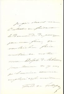 Il le prie, en faisant la demande de passage pour son frère, « de vouloir bien faire mention de notre neveu Adolphe de Cabarrus jeune homme de 19 ans qu’il emmène comme employé de sa maison »...