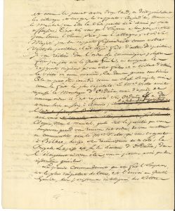 4-8 novembre 1808, au maréchal Lefebvre, duc de Dantzig ; 8 pages et demie in-4. Bayonne 4 novembre. Il transmet des reproches de l’Empereur concernant l’engagement d’une affaire avec le corps du général Blake, et l’absence de renseignements précis sur le nombre de troupes engagées de part et d’autre et sur l’interrogatoire des prisonniers pour savoir « le nombre des regimens qu’avoit le Gal Blake, la quantité & la nature de son artillerie, le nom des generaux »… Vittoria 6 novembre, l’Empereur est très fâché du faux mouvement de retraite de Bilbao : « S.M. ne s’attendoit pas à cette faute capitale de la part d’un maréchal aussi zélé pour son service »… Il indique comment Lefebvre eût pu prendre 8 ou 10 mille prisonniers à l’ennemi. S’il n’avait pas attaqué sans ordre, la campagne d’Espagne serait aujourd’hui bien avancée : « S.M. trouve que c’est avec de pareilles dispositions qu’on perd l’avantage de ses succès »… 8 novembre. L’Empereur a été 24 heures sans avoir de nouvelles du maréchal : « à la guerre, il est d’usage qu’on envoie au Quartier Général, un des officiers qui a eu part à une action intéressante. Si vous en aviez envoyé un de la Divon du Gal Villatte, l’Empereur l’aurait interrogé ; tous les mouvemens de l’armée ont été arrêttés par celui du Gal Villatte »… Il développe ces reproches et rappelle qu’aujourd’hui, « vous êtes la seule partie de l’armée qui soit offensive ; c’est sur vous que l’Empereur a les yeux, soit pour tourner l’ennemi, soit pour l’attaquer ». Il récapitule les mouvements du maréchal Victor ; Napoléon biffe trois lignes et écrit de sa main : « il a l’ordre de se concerter avec vous »... L’Empereur ordonne d’envoyer au quartier général des prisonniers intelligents, les lettres interceptées, des alcades des lieux où il passera, et de tenir ses troupes dans de bonnes positions, et de se concerter avec le maréchal Victor pour contenir l’ennemi, puis le pousser…