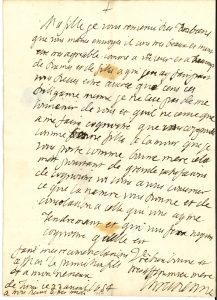 Turin 23 avril 1654, à sa fille [Henriette de Savoie, femme de Ferdinand, Électeur de Bavière] ; 1 page petit in-4, adresse avec sceaux de cire noire (brisés). Jolie lettre à sa fille. « Ma fille je vous remercie des rubans que vous maves envoyes il sont tres beaux et mont este tres agreable. Comme a vre seur et a beaucoup de dames et de filles a qui jen ay fait part vous deves estre asuree que sens ses diligance mesme je ne cese pas de me souvenir de vous et quil ne serve que a me faire cognoistre que vous corespondes comme bonne fille a lamour que je vous porte comme bonne mere »…