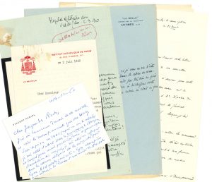 Georges Apponyi, Vincent Auriol (sur ce qu’il a fait pendant l’Occupation après sa sortie de prison en 1941), Alfred Baudrillart, Gaston de Béarn (2), Louis Bertrand (2), Alain de Boissieu (2), Abel Bonnard (réponse dactyl. corrigée à une enquête), Henry Bordeaux (et réponse à une enqûete), général Georges Demetz (3, dont une sur l’Algérie en 1960), Maurice Donnay, Georges Duhamel (réponse dactyl. corrigée à une enquête), Édouard Estaunié, Edgar Faure, maréchal Émile Fayolle (3), princesse Marina Galitzine, G. Georges-Picot, Georges Goyau (5), Françoise de France princesse de Grèce, général Paul Grossin, baron Gudenus, Guy de La Tournelle André de La Villerabel archevêque de Rouen (4), Georges Lecomte (4), Hubert Lyautey (2), François Mauriac, André Maurois, René Mayer, Denys Puech, David Rockefeller, Raoul Salan, carduinal Verdier, Maxime Weygand, etc.