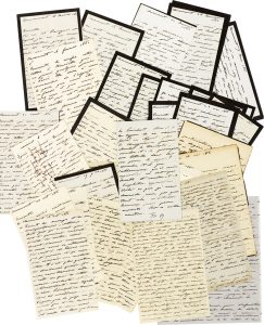 (la plupart signées des initiales ou de son paraphe), Claremont, Twickenham, Laeken, Paris, Chantilly etc. 1851, 1867-1869 et 1878, à Philippe-Victor Touchard ; 447 pages formats divers, surtout in-8, quelques adresses. Importante correspondance à son ancien aide de camp, fidèle homme de confiance et futur vice-amiral (1875) et député orléaniste (1877-1879). Nous ne pouvons en donner ici qu’un bref aperçu de ces lettres souvent longues, d’un grand intérêt politique. L’amicale confiance du prince de Joinville en Touchard peut s’expliquer par des liens de parenté ; selon la tradition familiale, Touchard serait le fils naturel de François Ier, roi des Deux-Siciles, donc le neveu de Marie-Amélie et le cousin germain de Joinville. 1851. Commentaires sur le virage impérial. Le débat à la Législative sur la révocation de Changarnier de son double commandement réjouit Joinville : « le Président est démasqué », et le talent de Thiers « sans borne » (21 janvier)... « La France entière est dans la main du Président et de ses agents. [...] après avoir joué à la révolution en 1848 nous jouons au despotisme en 1851 » ; inconscience et lâcheté des Français (28 janvier)... Approbation donnée au comte de Chambord (24 février)... Rêve de réunir les partis monarchiques sur le terrain de 89 (6 mars)... Déploration du « gâchis politique » en France, observations sur les changements au Portugal (14 mai)... Analyse du rôle « décisivement mauvais » que pourraient jouer les légitimistes ; « la France marchera en paix vers le précipice » (23 mai)... Révision de la Constitution, accalmie dans les rumeurs de coup d’État, mais « Louis Napoléon ne s’en ira pas » (24 sept.)... « Nous sommes à la disposition du pays si le pays nous fait appel. Mais d’ici là nous ne voulons pas nous mêler à la guerre des partis, nous ne voulons pas qu’on nous fasse parler, qu’on se serve de nos paroles… pour influencer les événements » (4 octobre)... Entente entre lui-même et Thiers face à l’« audace insolente et outrecuidante » du Président (15 oct.)... La mort enlève à Chambord sa conseillère, la duchesse d’Angoulême, mais le prince est plus sage que son parti (24 oct.)... Formation d’un nouveau ministère (28 oct.)... « La famille d’Orléans ne verse ni à gauche ni à droite. Elle attend avec quelques amis fidèles avec qui elle est en communauté d’idées et de sentiments si le pays qui fait une expérience de gouvernement avec M. Louis Bonaparte n’y trouve pas ce qu’il cherchait ; s’il se désabuse du Bonapartisme, il trouver les Princes d’Orléans, [...] respectueux de la souveraineté nationale et dévoués aux intérêts du pays, bleus en un mot » (2 novembre)... Longue analyse à l’approche de la « crise de 1852 » : il est question de la « girouette de Président », du duc de Broglie, des rouges et des leurs (10 nov.)... Analyse du coup d’État à venir (23 nov.)... Réaction au coup d’État : « Le succès du président n’a tenu qu’à un fil et le moindre souffle eut pu faire tourner le vent d’un autre côté et l’eut fait souffler avec la même violence. Mais enfin il y a succès complet ratifié par l’immense majorité du pays. Dieu veuille que notre pauvre France y trouve son compte. Elle y trouvera probablement une certaine durée de tranquillité que je crois pour ma part assez longue » (27 décembre)… 1867. Commentaires sur l’Empire qui « va mal », et analyse de la politique des voisins européens (1er octobre)... 1868. Sur les préparatifs de guerre de la France, et la rupture entre Napoléon III et Plon-Plon (21 janvier)... « L’Empire est malade », et la dotation héréditaire « une absurdité » (11 mars)... Affaires du Brésil (14 mars-9 avril)... Sur les risques de guerre en Europe, l’Empereur y étant entraîné, comme le dit le Prince Napoléon, « par le pire des mécontentements celui de lui-même » (14 octobre)... 1869. Analyse de la situation en Europe (3 février)… Sur les affaires d’Espagne (7 mars)... Tel est l’état de l’opinion en Europe que « pour tenir compte de Bismarck ou des demandes machiavéliques des Autrichiens, tout le monde dit : sous la France nous aurions la paix et la prospérité » (18 mars)... Exploits militaires de ses fils en Styrie (8 octobre)… Sur la prochaine nomination du gouvernement libéral d’Émile Ollivier qui ne parviendra pas « à rajeunir, transformer l’Empire et rendre confiance au pays » (24 novembre)… 1878. Il serait « si facile à la France d’avoir un rôle prépondérant » (1er mars)... – Sur l’affaire de Gallipoli, les Anglais et les Russes… – L’Exposition… – Sur la protestation des Droites : « Avant tout, il faut rester conservateur et avec les conservateurs. Le seul avenir est là »… Etc. Le prince de Joinville parle aussi longuement de lui-même, de sa santé, de ses voyages, de sa propre famille (femme et enfants), de la mère « la Reine », de ses frères, son beau-frère Léopold, sa belle-sœur la duchesse d’Orléans, etc. On rencontre aussi les noms de familiers ou fidèles tels qu’Asseline, Baudin, Berryer, Fain, Fauvel, La Roncière, R. de Montmorency, Piscatory, P. de Ségur, etc.