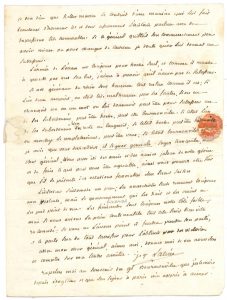 Paris 21 floréal IV (10 mai 1796), au général Grouchy, à Utrecht ; 3 pages in-4, adresse. Très belle lettre sur les armées de la République et la situation de la France. Il indique les mesures prises par Carnot pour l’organisation de l’Armée du Nord : réduire les demi-brigades de Hollande, compléter des compagnies d’artillerie, fondre les compagnies de canonniers, compléter la cavalerie, etc. Puis il répond aux questions de Grouchy concernant un éventuel conflit franco-prussien : « nous ne devons pas nous abandonner à une sécurité absolue vis-à-vis d’une cour qui avait concouru au traité de Pilnitz, sans doute nous devons être en garde contre un prince foible, et de vicieux courtisans […] mais tant de raisons puissantes militent en notre faveur que je serois bien etonné, très etonné si la Prusse nous attaquoit. Veillons cependant »... Carnot estime qu’il faut s’occuper du rétablissement des places de Grave et Bois-le-Duc, mais que c’est à Beurnonville et à Grouchy à en traiter avec le gouvernement batave… Puis il évoque les victoires de l’armée d’Italie, avec Berthier comme chef d’état-major, à laquelle sera mêlée celle des Alpes, et qui « passe presque toute entière sous les ordres de Bonnaparte, et à ce propos je dois dire que Kellermann se conduit d’une manière qui lui fait beaucoup d’honneur ici […] L’armée de l’Ocean est toujours pour Hoche seul, et comme il marche à grands pas vers son but, j’aime à prevoir qu’il n’aura pas de successeur »... Il termine en faisant un rapide bilan de la situation intérieure de la France : « les anarchistes seuls remuent toujours avec violence, mais le gouvernement qui les hait et les craint ne les perd point de vue. Les finnances sont toujours notre côté foible, mais si nous avions la paix continentale tout cela seroit bien vite racomodé »...