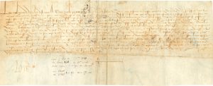 Blois 4 septembre 1511 ; vélin oblong in-fol. (18 x 46 cm) (légères taches, encre un peu pâle par endroits, quelques notes postérieures à l’encre au bas du document). Envoi d’un ambassadeur auprès de Jacques IV, roi d’Écosse. « Comme pour confermer et ratiffier pour et ou nom de nous et de noz successeurs Roys les anciennes alliances amytiez et confederacions estant entre nos predecesseurs Roys & la couronne de France et les Roys d’Escosse par specialment entre nous et treshault tresexcellent et trespuissant prince nostre trescher et tresame frere cousin et allye James par icelle mesme grace Roy d’Escosse », il envoie et délègue à cet effet un « personnaige notable a nous seur et fiable », son conseiller et maistre des Requestes ordinaire de son hostel Jehan Salat, avec « pouvoir auctorité et puissance de confirmer et ratiffier […] les anciennes alliances amytiez et confederacions faictes et passees entre noz predecesseurs Roys et les predecesseurs dicelluy nostre frere cousin et allye le Roy d’Escosse »…