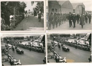 la plupart environ 12 x 17 cm, un cachet Cliché de la Section cinématographique et photographique, Gouvernement Général Madagascar et dépendances.Ensemble de clichés professionnels : revues, parades et cérémonies militaires, dont le cortège officiel de l’arrivée du gouverneur général Cayla à Tananarive, et la réception du commandant supérieur des troupes du Groupe de l’Afrique Orientale Française, le général Roucaud ; cérémonies à l’aérodrome, dont un cliché de l’orchestre à majorité indigène ; fête des colons, travaux sur une ligne ferroviaire ; photo de classe de 10e chez les Pères jésuites d’Amparibe à Tananarive… Plus 3 petits clichés d’amateur, dont un représentant un Noir en uniforme tenant un bébé blanc.