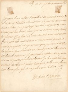 Françoise d’Aubigné, marquise de MAINTENON. L.A.S., Versailles 11 juin, à un prélat ; 1 page in-4 (encadrée, 2 petites traces de colle).