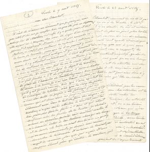 Perote 3-23 août 1865 ; 16 pages in-8 et 2 pages obl. in-12. Lettres d’un officier du corps expéditionnaire du Mexique, qui tente l’aventure minière, à son ami aide de camp du maréchal Bazaine, Il raconte ses fouilles infructueuses, suivant la relacion d’un certain Martinez, un escroc et un voleur… Si le maréchal demande « si je vous parle politique, dites-lui que je me suis borné à vous exprimer mon opinion sur ce que font les autrichiens ici par ces seuls mots : Hélas ! Hélas ! Hélas ! On les exècre, et ils font tout pour cela » (9 août)… Il faut signaler au maréchal les erreurs de l’empereur Maximilien, et le péril dans lequel se trouve le corps… Une saisissante relation (incomplète) de la bataille de Puebla, de mai 1862, devait nourrir le récit correspondant de L’Intervention française au Mexique de Blanchot (E. Nourry, 1911) : l’officier décrit la place, l’attaque frontale sous le commandement de Lorencez, les blessures du général d’artillerie de Laumière, et du colonel Garnier qui commandait la tranchée, les combats nocturnes : « Il semblait que nous étions aux enfers, c’était satanique. Tout l’ouvrage en terre était bouleversé comme par un tremblement du globe […] et au milieu de tout cela des cadavres écrasés, brûlés, des blessés gémissant sur lesquels on marchait, en trébuchant. Puis nos zouaves noirs de poudre et de poussières cachés par petits groupes, le long des parapets, derrière des amas de pierre, guêtant l’ennemi et se couvrant contre la pluie de fer »… Le général est resté calme, fumant un cigare et donnant des ordres, mais l’incendie d’un magasin de munitions est cause qu’à l’intérieur du fort, de « malheureux Mexicains, enfermés par leurs chefs, grillaient », etc.