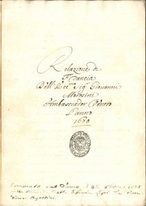 Giovanni MOROSINI (1633-1682) ambassadeur de Venise en France. Manuscrit, Relazione di Francia dell’Exccmo Sigr. Giovanni Morosini Ambasciador Veneto l’anno 1670 ;