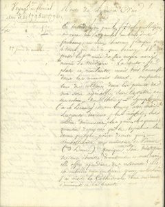 Récit de voyage en « 17 jours de marche » (en voiture de poste), les dates laissées en blanc, avec notes sur le pays, les villes et monuments, et, discrètement, des faits révolutionnaires. Le voyageur passe à Saint-Symphorien, Vienne, Valence, Loriol, Montélimart, le Pont-Saint-Esprit, Mornas, Piolenc, Orange (« Peu de tems avant notre passage la fameuse Comon révolutionre avait terminé ses massacres : on frémisait au souenir des victimes immolées à sa rage »), Sorgues, Orgon, Avignon (« la place sur laquelle l’échaffaut de mort était en permanence, annonçait assez par le peu de monde qu’on y rencontrait les tristes souvenirs des exécutions revolutionnaires »), Saint-Andiol, Aix-en-Provence, Saint-Maximin, Brignoles, Fréjus, Cannes, Antibes, Nice (« Tandis que l’armée maintenait les austro-sardes dans les positions avancées de Savone, d’Ormea et de Tende, souvent des parties de barbets venaient nous inquiéter à Nice »)…