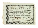 * Antoine-Philippe de la Trémoïlle, prince de Talmond (1765-1794). P.S. : bon de 100 livres au nom de l’Armée Catholique et Royale, avec la mention « vive le Roi Louis XVII », cosigné par Joseph-Guy de Donnissan, le comte de Beauvollier, et l’abbé Bernier, curé de Saint-Laud.