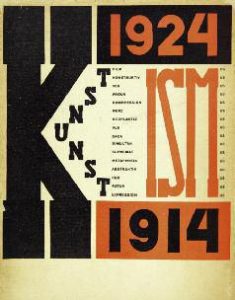 Edition originale, couverture, typographie et mise en page de El Lissitzky. Panorama des différents mouvements de l’avant- garde internationale. (Restauration à la rare couverture souple). Ouvrage incontournable.
