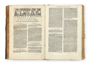 Jolie édition du XVIe siècle de Luminare maius, comprenant le Lumen apothecarium et ornée de bandeaux, lettrines et de deux marques de l’imprimeur gravés en taille-douce.