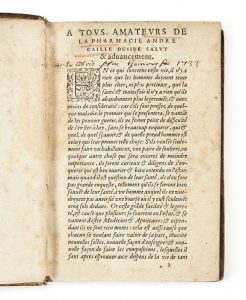 Première édition de la traduction en français d’André Caille, du traité de pharmacopée de Dubois, essentiel pour l’étude de l’histoire des pharmacopées comme de la médecine et qui eut une grande influence lors de sa parution.