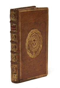 contreplats à bordure de même peau ornée de roulette dorée, dos à nerfs orné, tranches mouchetées rouge (reliure de l’époque).