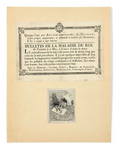 Pièce imprimée du Bulletin de la maladie du Roi, datée du 7 mai, 8 heures & demie du matin et signée Le Monnier, Lassone, Lorry, Bordeu, De Lassaigne, La Martinière, Andouillé, Boiscaillaud, Lamarque, Colon, médecins du roi.
