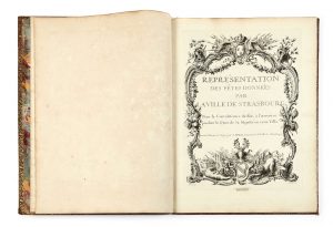 Jean-Martin WEIS - 1711 - 1751 — Représentations des fêtes données par la ville de Strasbourg — Paris, Laurent Aubert, [1747] — In-folio (62,5 x 45,5 cm), [1] f. de titre gravé, 12 de pl. (dont 11 doubles p.) et 20 p. de texte, maroquin...