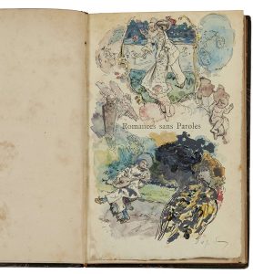 Elle est peinte sur un faux-titre tiré vraisemblablement d'un exemplaire sur papier vergé de Hollande de l'édition du même recueil donnée par Léon Vanier en 1887.