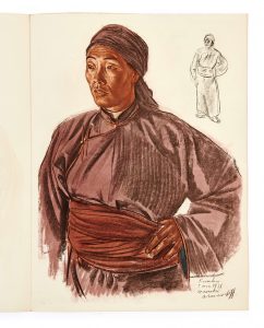 Alexandre IACOVLEFF - 1887 - 1938 — Dessins et peintures d'Asie — Paris, Vogel, [s.d.] — In-folio (37,5 x 27,7 cm), [13] f. et 50 pl., broché et en feuilles, emboîtage de chagrin brun et havane.