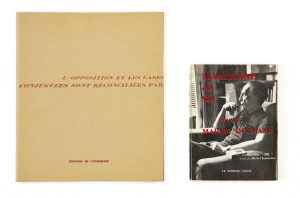 Écrits de Marcel Duchamp réunis et présentés par Michel Sanouillet, pour le premier ouvrage de la collection « 391 », avec des reproductions d’oeuvres de l’artiste, comprenant un transparent représentant sa célèbre Mariée mise à nu par ses célibataires, même.