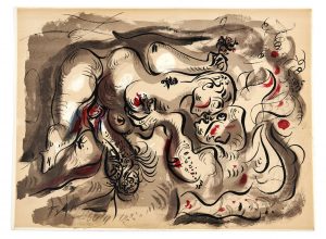 Ens. de 20 lithographies originales d’André Masson réalisées dans l’atelier de Claude Jobin, dont 5 en couleurs et 15 en noir. Avec « Éros solaire », préface d’André Pieyre de Mandiargue et « Dessins érotiques », introduction de Gilbert Brownstone.