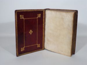 de lis au centre et aux angles des contreplats, dent. d'encadrement, tranches dorées (Reliure de l'époque).