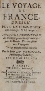 DU VERDIER (Gilbert Saunier) et [Claude de VARENNES]. Le Voyage de France, dressé pour la commodité des François & Estrangers. Avec une description des chemins pour aller & venir par tout le monde. Paris, Michel Bobin, Nicolas Le Gras, 1663....