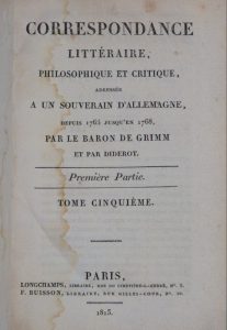 La quasi-totalité des articles qu'il renferme sont de Grimm lui-même, avec également des textes de Diderot, de Voltaire, de Rousseau, etc.