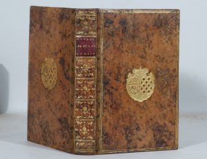 triple filet doré d'encadrement sur les plats, armes au centre, tranches rouges (Reliure de l'époque).