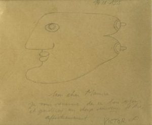 Dessin original au crayon sur papier de Brauner daté, signé Victor et dédicacé à Maurice Foinet. Maurice Foinet, collectionneur, mécène et marchand d’art, fut l’ami des artistes, dont Man Ray et Brauner.